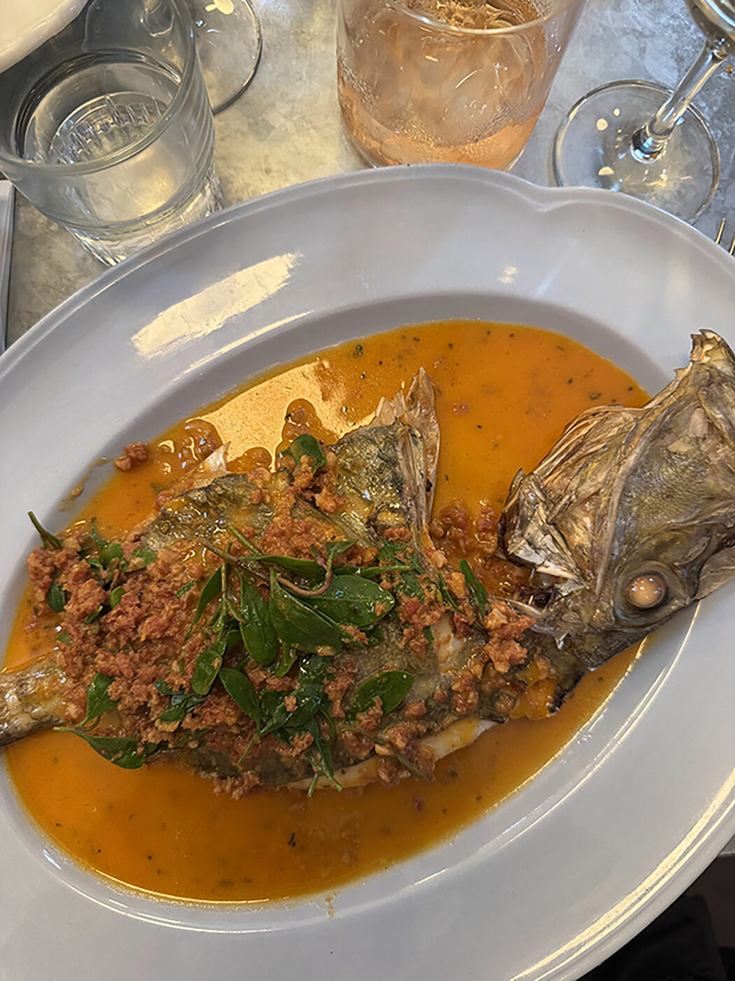 Nothing is having a bigger moment these last couple of years than the bistro. Josephine, in Chelsea, owned by Claude Bosi and his wife, Lucy, is an ode to the chef’s Lyonnais roots. The handsome room features a menu of smartly updated bistro and bouchon classics. From the gougères to the frogs’ legs, ris deveau and rum baba—all was à point on the Fulham Road. At Henri, in Covent Garden, we found Jackson Boxer’s British spin on the bistro to be inventive and delicious: a skewer of grilled snails, savoury seaweed-infused canelés, turbot for two, a perfect saucisse de Toulouse with pommes purée. We had more gougères and frogs’ legs and buttery grilled fish at Café François in Borough Market.