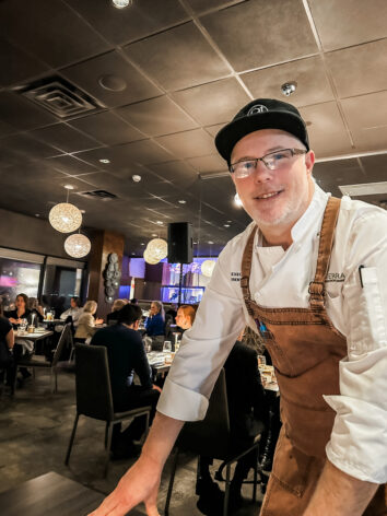 The main reason for the trip was Lakes & Land, a Kingstonlicious signature event held at AquaTerra. For one evening, Chef Brent McAllister (AquaTerra) and Chef Justin Champagne-Lagarde (Perch) worked side by side, building a menu that drew directly from southeastern Ontario — Patchwork Gardens, Salt of the Earth Farms, Fat Chance Farmstead, and local creameries among the contributors.