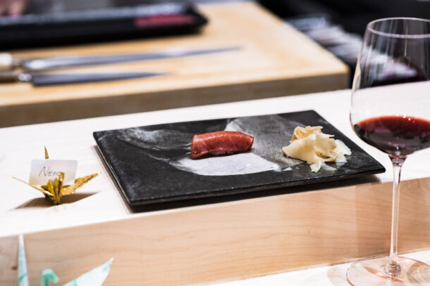 The dinners showcased Domaine Pierre Vincent, a Burgundian house that already shines brightly on Shushi Yūgen’s wine list. “By pairing her omakase with these wines,” says Sun, “we introduced Toronto diners to a dialogue between Japanese shun (seasonality) and French terroir that had never been seen here before.”