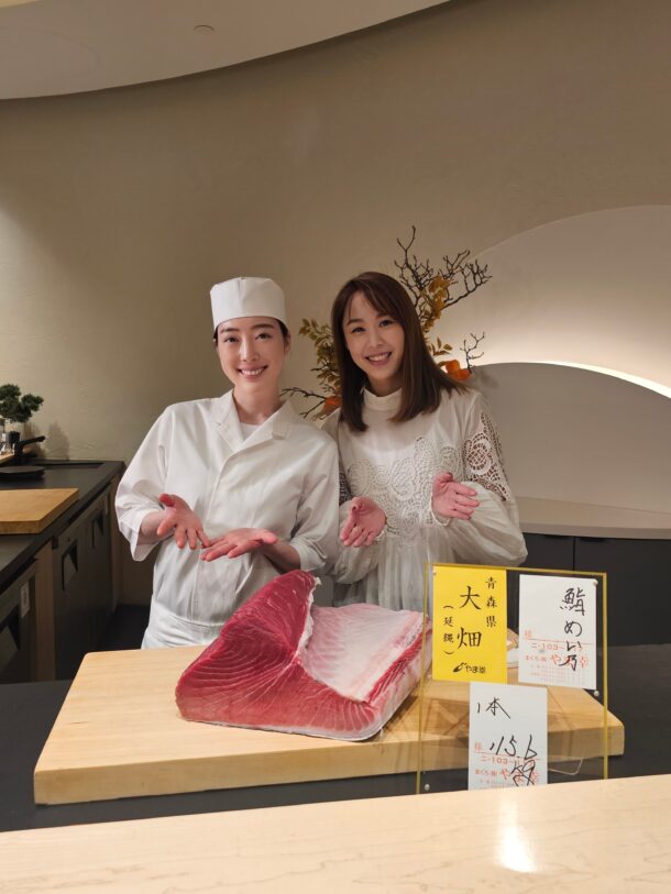 Mei Kōgo and Kamen Sun with Japanese bluefin.